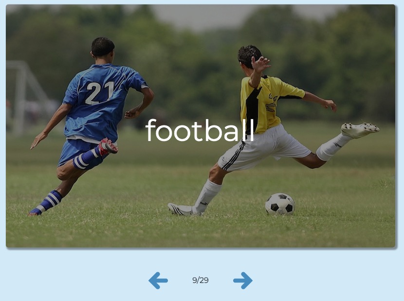 Match the sports to their names by clicking on the cards to turn them over. The team with the most pairs wins! There are three sets to choose from.